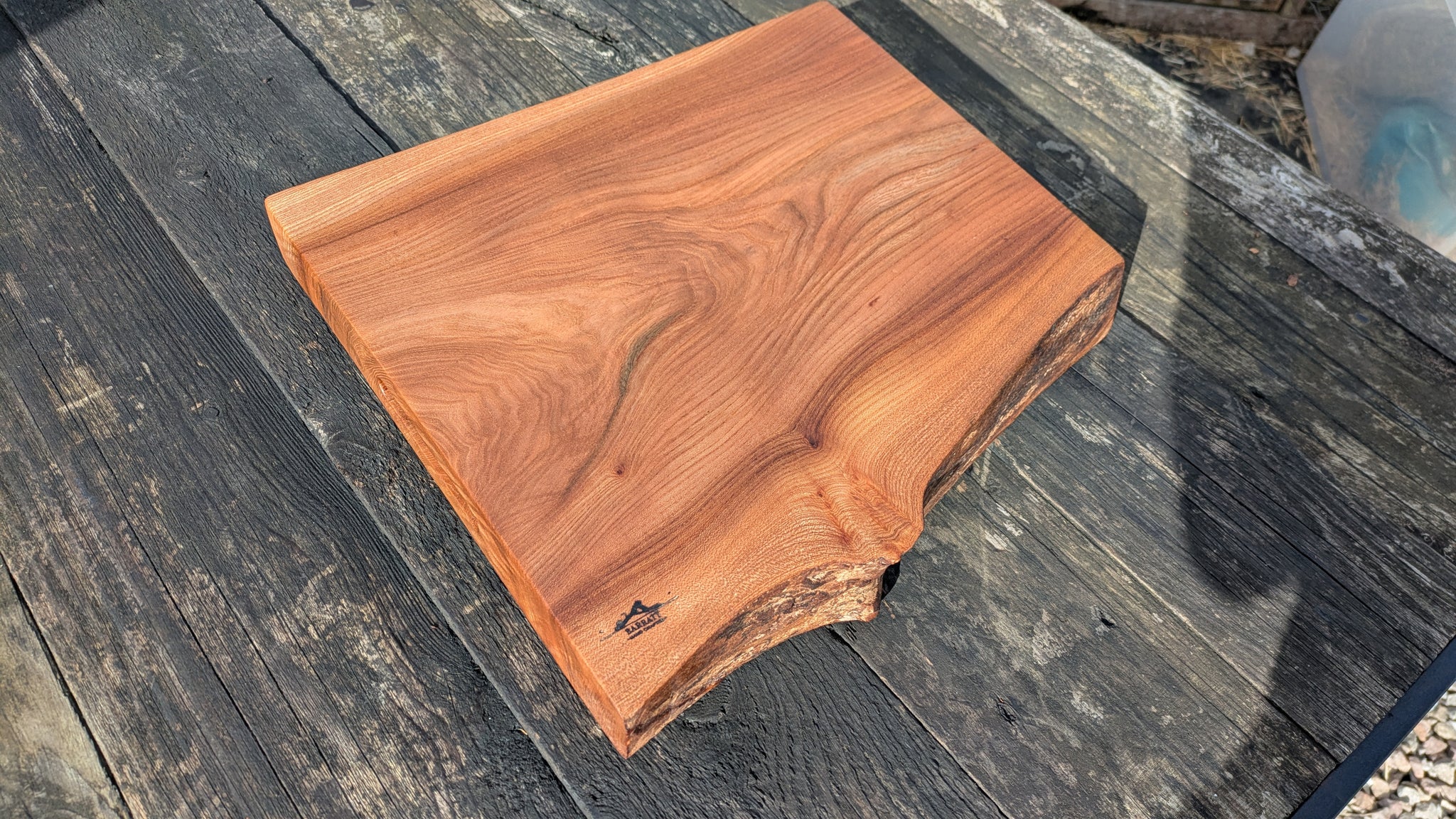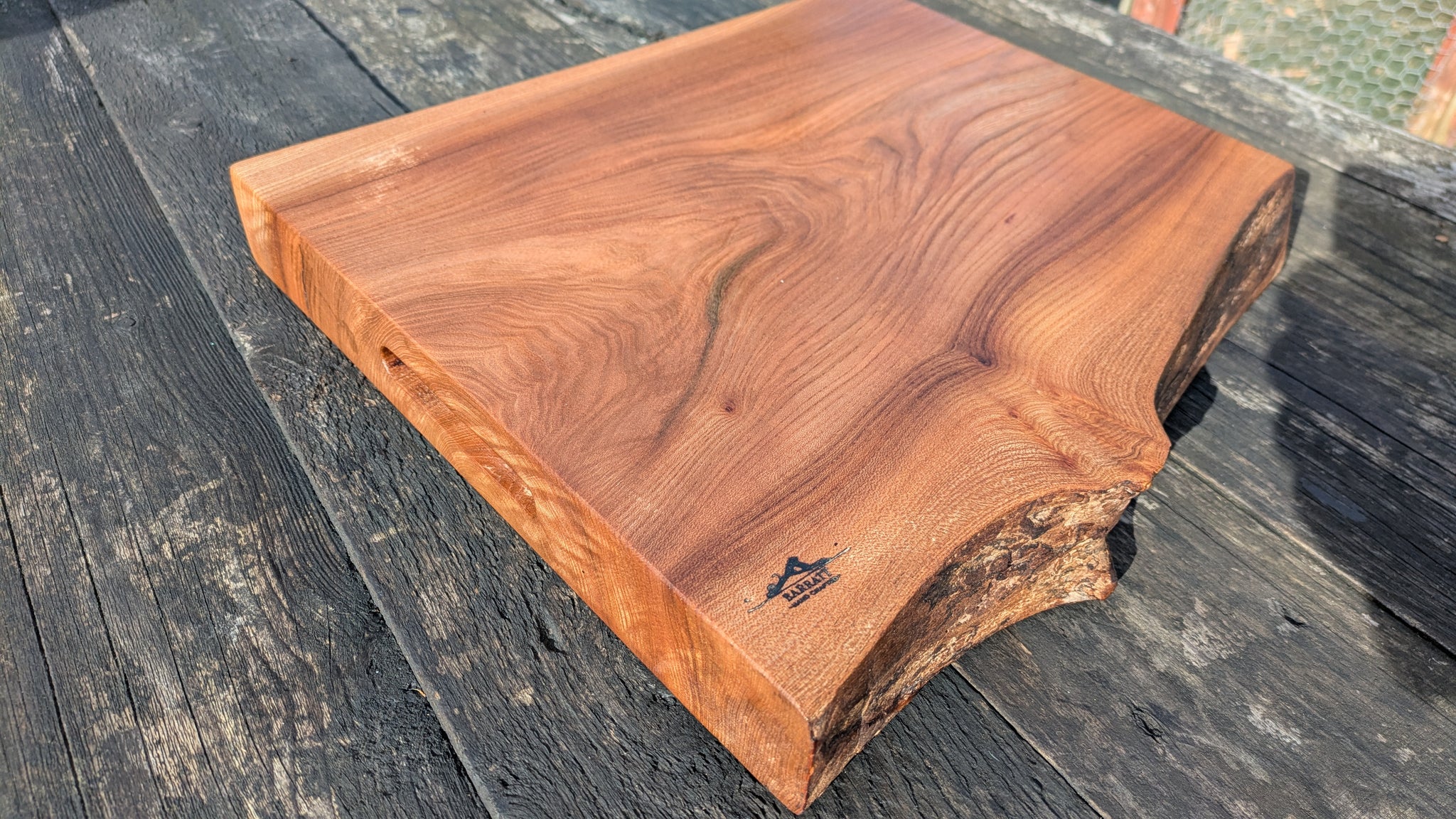 Expertly crafted from Wych Elm, this chopping board boasts a beautiful hardwood finish. Its live, natural edge adds a touch of rustic charm, making it the perfect addition to any home. Finished with mineral oil and beeswax, and featuring small non-slip feet, this board is both functional and aesthetically pleasing.